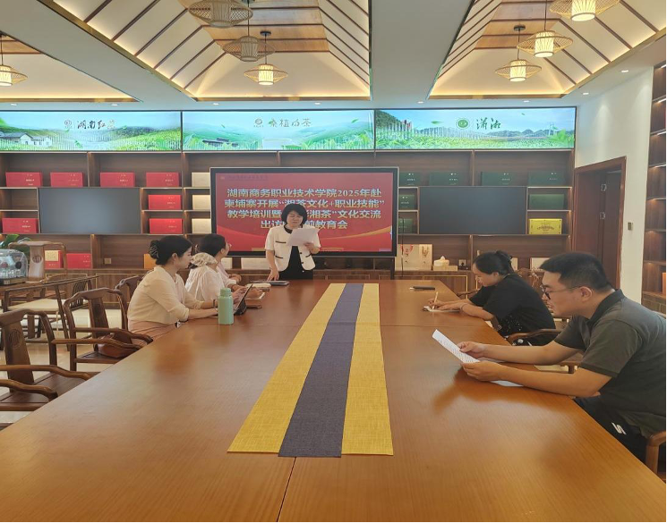 为强化因公出国(境)人员纪律意识与责任担当,保障出访任务安全、规范、高效完成,8月12日上午,湖南商务职业技术学院在崇理楼104会议室召开了2025年赴柬埔寨“湘茶文化+职业技能”教学培训暨“五彩湘茶”文化交流出访团组行前教育会。学院党委委员、副院长禹明华,组织人事部部长陈龙,赴柬埔寨团组成员参加会议。