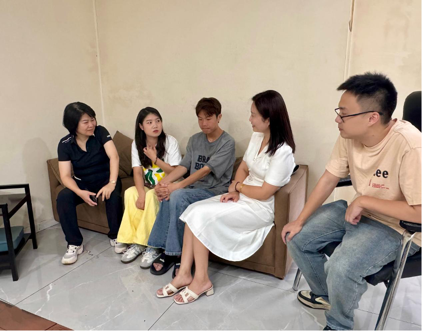 家访团队前往2024级国际商务专业欧同学姐姐的工作地。欧同学父亲患有白内障,需在家照顾奶奶,母亲在外打工,姐姐承担了他的大学学费。欧同学暑假期间通过跑外卖减轻家庭负担。他的姐姐感叹:“入学后的变化很大,现在不仅会规划未来,还主动打工分担压力,感谢学校的悉心培养。”
