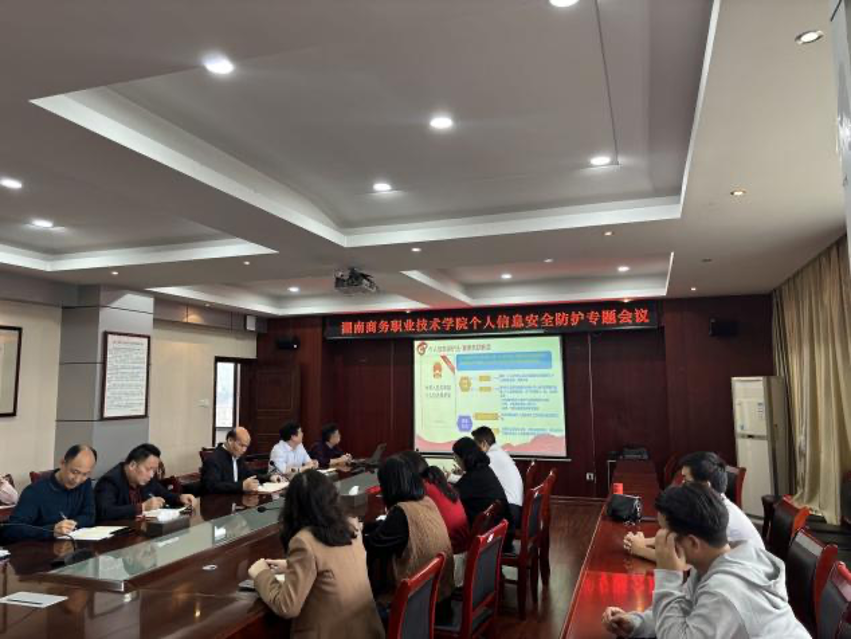 会上,实训与信息管理中心主任毛政珍深入解读了《中华人民共和国网络安全法》《中华人民共和国个人信息保护法》的核心要义,并结合当前严峻的网络安全形势,通过一系列真实案例进行了生动剖析。为系统化加强个人信息全生命周期管理,规范信息的收集、存储、使用、传输、共享及销毁各环节,会议重点讨论并审议了《湖南商务职业技术学院个人信息安全防护制度(草案)》,与会人员积极建言,进一步完善了制度内容。