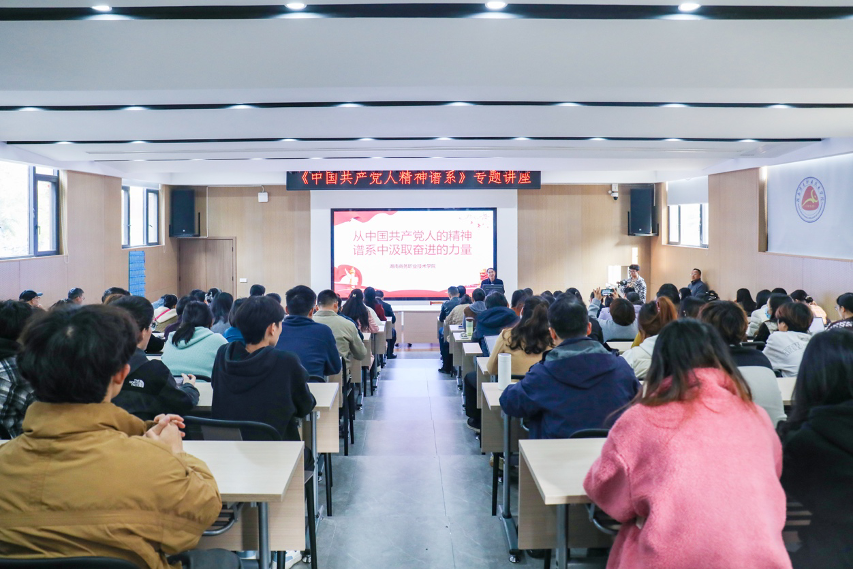 12月11日,一场题为“从中国共产党人的精神谱系中汲取奋进的力量”的专题讲座在湖南商务职业技术学院商务校区举行。党委副书记桂诚同志担任主讲,围绕中国共产党人精神谱系的发展演进、主要功能与传承弘扬三个核心维度进行了系统阐述和深刻解读。商务校区各党总支、党支部委员及学生党员代表到场聆听,共同接受精神洗礼。