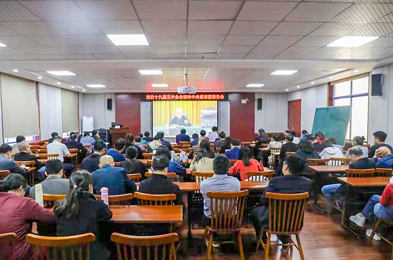 周忠新强调,要把学习宣传贯彻好全会精神作为重要政治任务,纳入理论学习中心组的学习和各基层党党组织的学习计划,与落实习近平总书记来湘考察对湖南提出的“打造‘三个高地’、 担当‘四新’使命、落实五项重点任务”要求相结合,与当前学院各项重点工作相结合,尤其在当前全院上下喜迎第三次党代会和70周年校庆之际,更要加强领导、精心组织,扎实深入地抓好全会精神的学习贯彻落实,指导推动学院十四五蓝图绘就好、实现好!