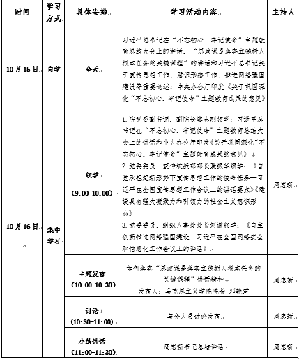 10月15日全天自学,10月16日(星期五)9:00-11:30集中学习