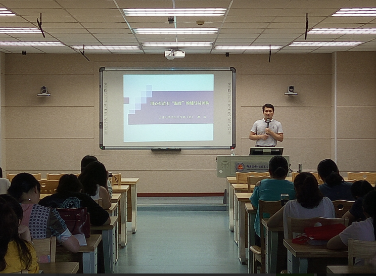 6月20日下午,吉首大学学生工作部副部长廖浩应邀来我院作“用心打造有“温度”的辅导员团队”专题培训讲座。我院全体辅导员参加了本次讲座。