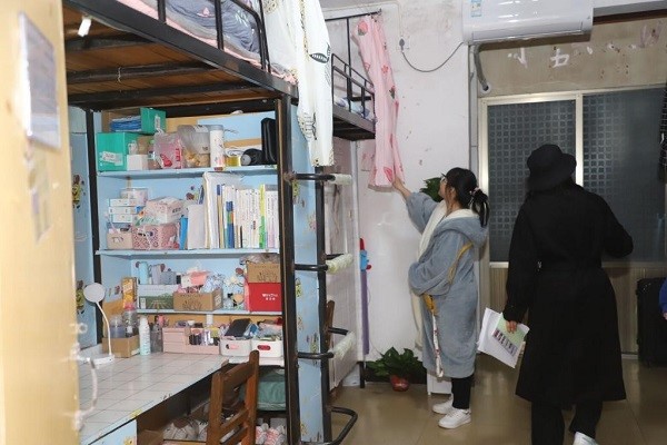 总评:宿委会干事联合二级学院分会对进入最终评选的宿舍进行走访和卫生检查。同学们积极配合宿管工作人员工作,内务整洁。