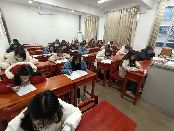 中午1时,宿委会全体成员到达教室布置考场。考试开始前各监考人员强调考试要严守纪律。考试过程中同学们冷静思考,考场庄严安静。铃声响起,整场考试至此结束。同学们起立交卷,井然有序的离开考场。