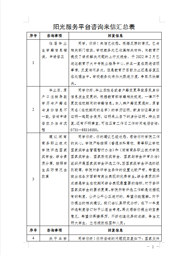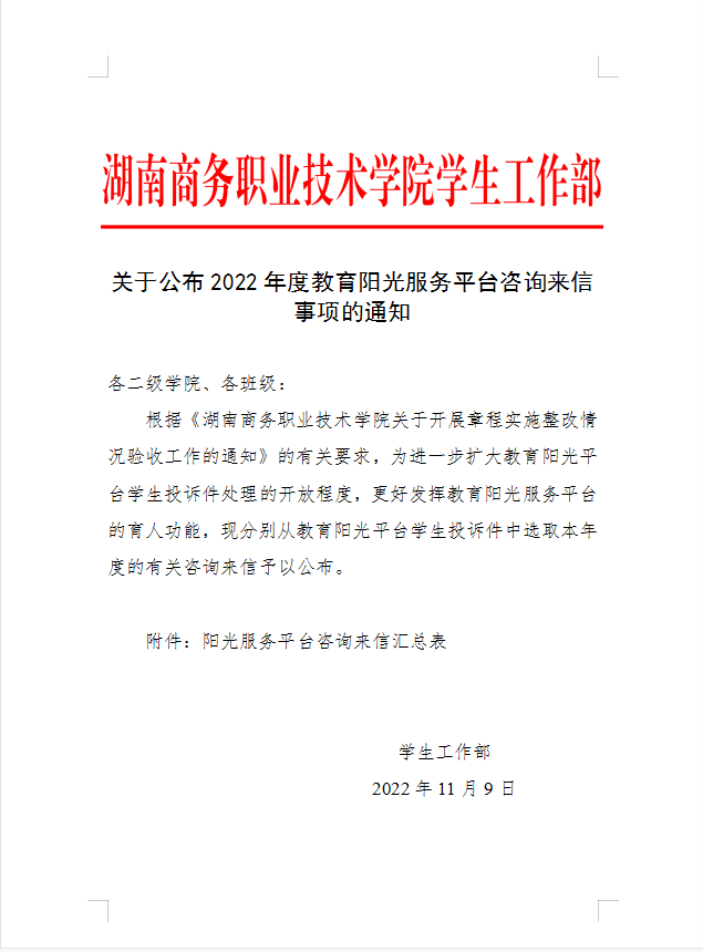 关于公布2022年度教育阳光服务平台咨询来信事项的通知