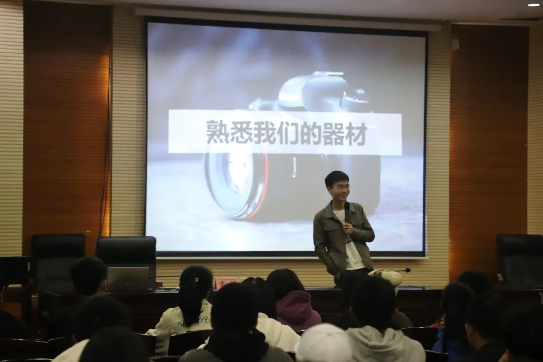 本次培训共分为5期进行,分别以摄影基础、新闻活动摄影、摄影进阶、摄像基础以及基础摄影后期为主题,带领同学们熟系摄影器材,讲解关于相机的基础知识,如相机的正确拿法、如何更换镜头以及如何安装闪光灯,此外他特别提出要大家好好爱护手中的设备。