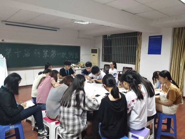 2017年9月6日晚上七点,朋辈新学期第一次例会在沙盘治疗室召开。第九届两位秘书长白艳杰、向倩,第十届两位秘书长李诗倩、肖冬梅,以及第十届朋辈成员共18人参加了本次例会。