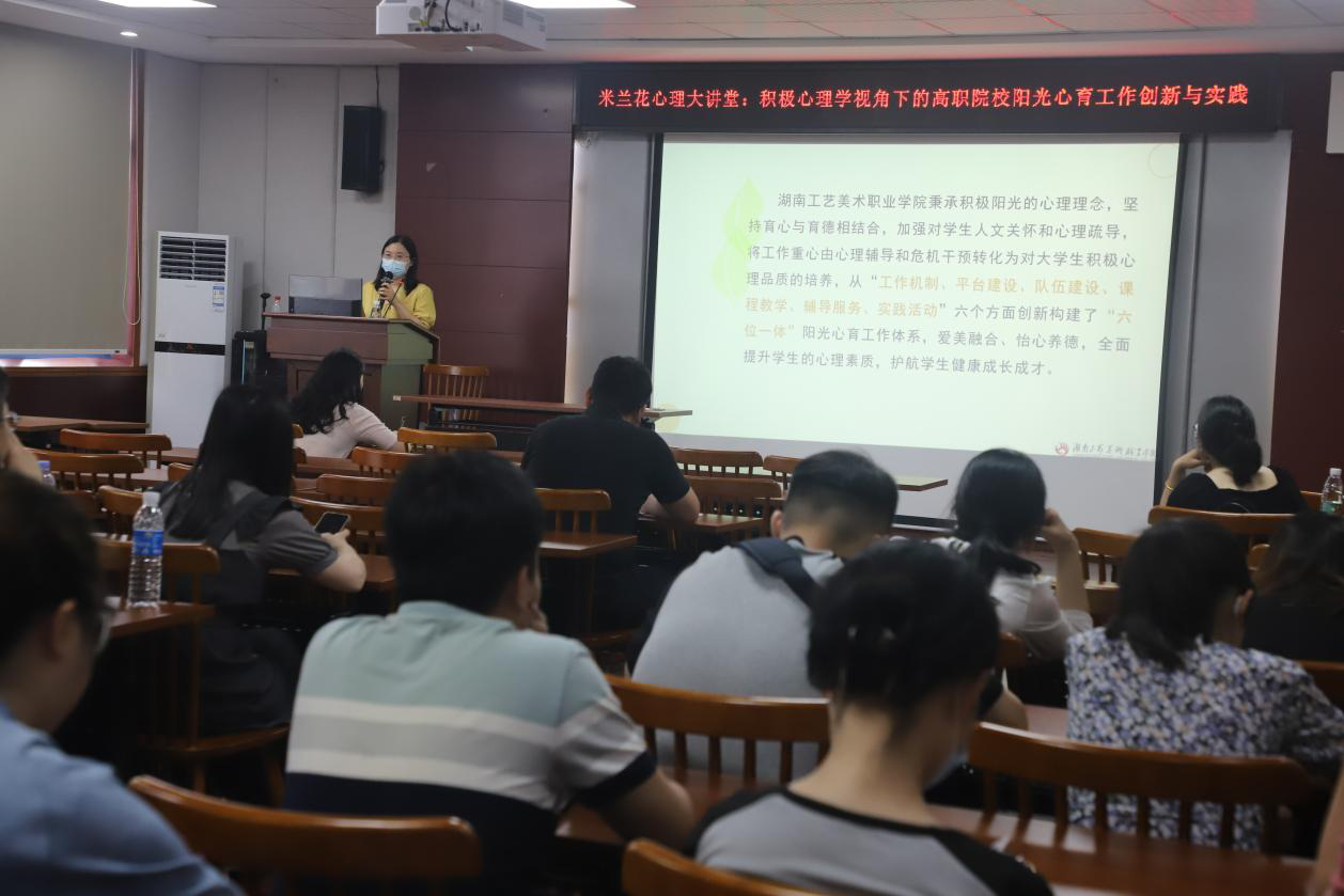 随着高等职业教育改革的深化和发展,心理健康教育已成为高职院校的工作重点。积极心理学视野下的高职院校心理健康教育,将以一种崭新的视角诠释心理学,对大学生的心理健康起到积极的作用。为此湖南商务职业技术学院米兰花心理大讲堂特邀湖南工艺美术职业学院心理中心主任陈燕妮老师于2023年5月30日来校交流“在积极心理学视角下的高职院校阳光心育工作创新与实践”,讲座在二教201举行,学生工作部张庆副部长参加此次讲座。
