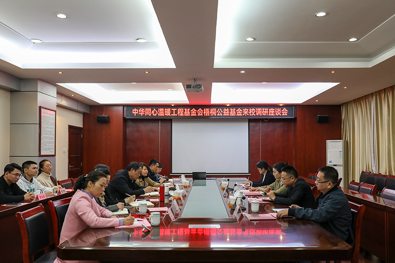 湖南省温暖工程基金会理事长谭圣林、秘书长马晓花、副秘书长(挂职)董徽及学院党政办、学工处、招就处、宣统部等相关部门负责人参加调研座谈会。(通讯员易婧 丁贤芳 唐子琪 摄影 周画 李林林)