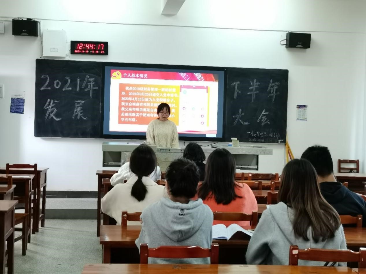 11月9日12:30,会计学院学工二党支部2021年下半年新党员发展大会在二教310举行,本次大会由学生党员谢华鑫同志主持,全体党员参与本次大会。
