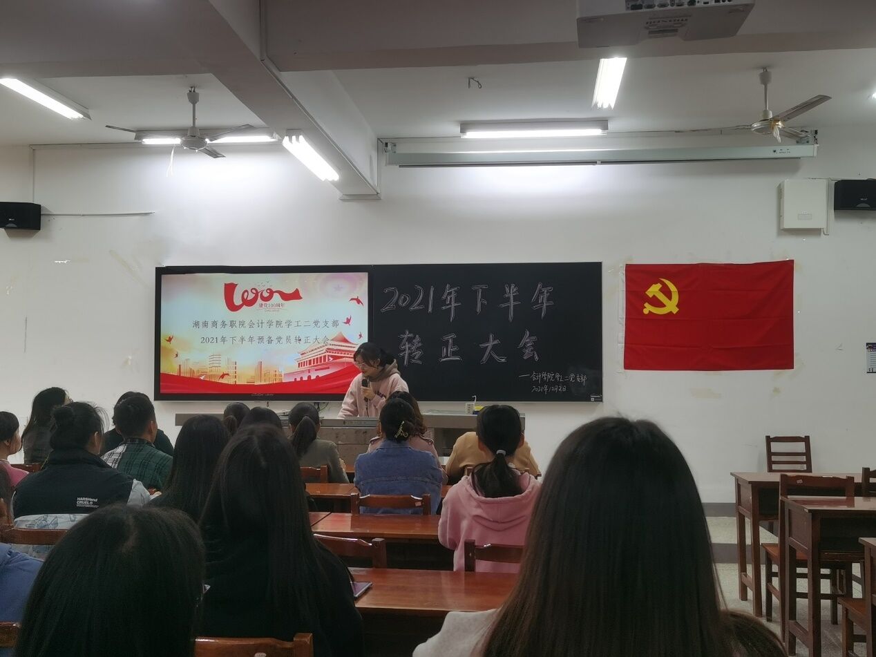 12月2日下午16:00,会计学院学工二党支部2021年下半年预备党员转正大会在二教301举行,本次大会由党支部助理谭梦舟主持,全体党员参与本次大会。