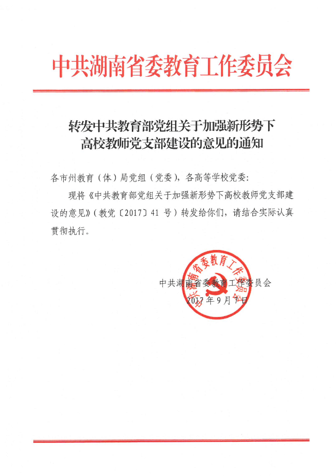 转发中共教育部党组关于加强新形势下高校教师党支部建设的意见的通知